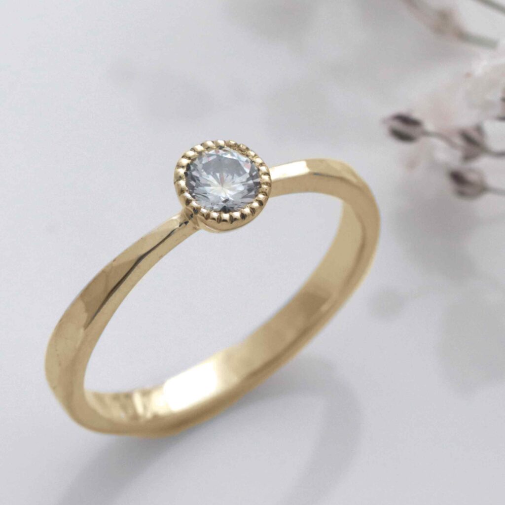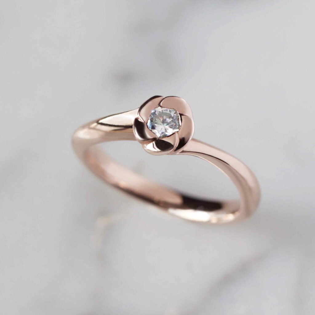 近年は、普段使いしやすいシンプルなデザインや、肌なじみの良いゴールド素材、マットな質感など、日常に溶け込む婚約指輪が多く登場しています。