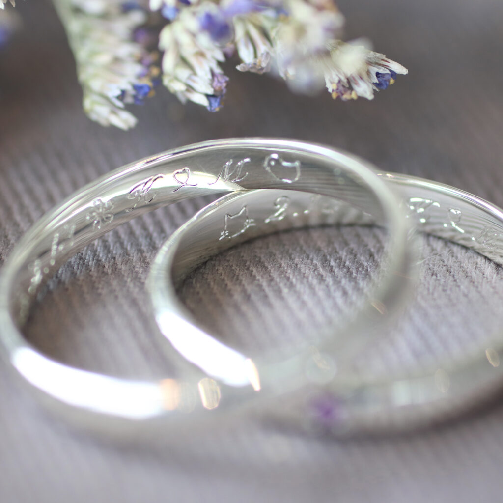 指輪に刻まれた刻印は、ふたりの物語を語る小さな証。