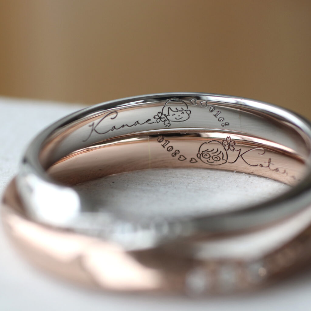 自分たちだけの指輪に、自分たちの想いや記念日を“文字”として残すことで、ぐっと特別なものになるからです。