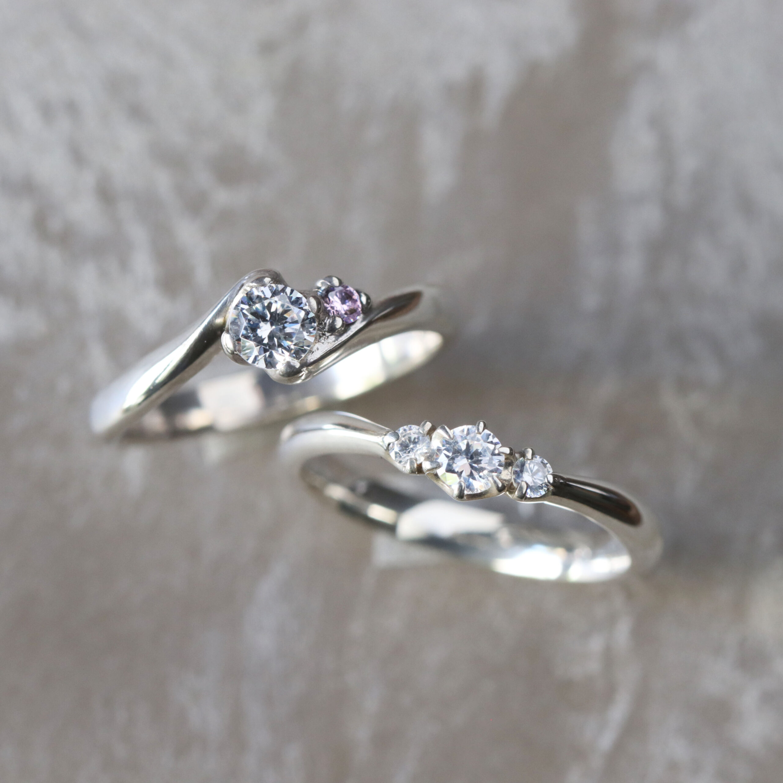 古くからブライダルリングの定番として愛される素材。純白を思わせるシャープな白色の輝きが魅力です。