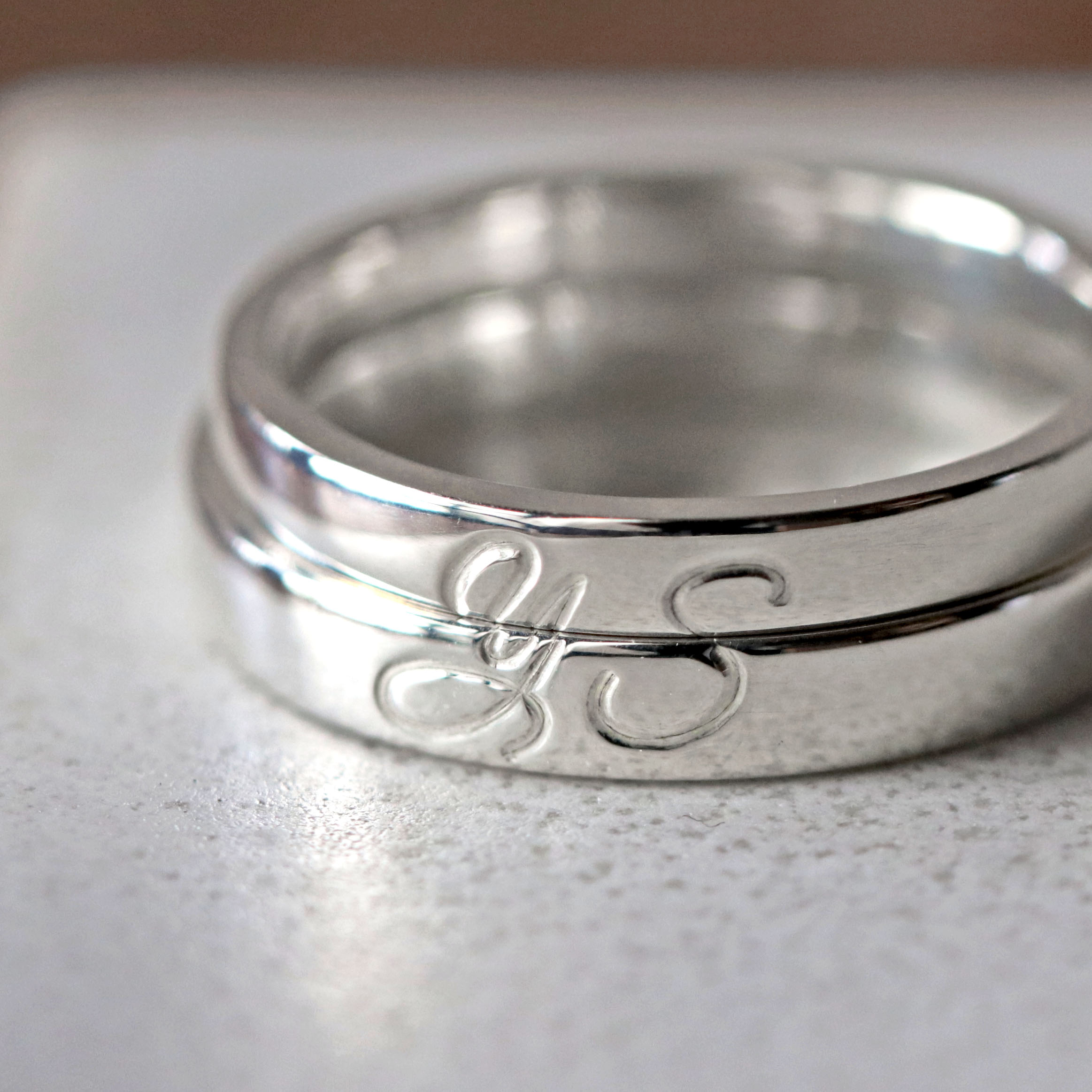 重ねると二人のイニシャルが現れるレターデザインのマリッジリング