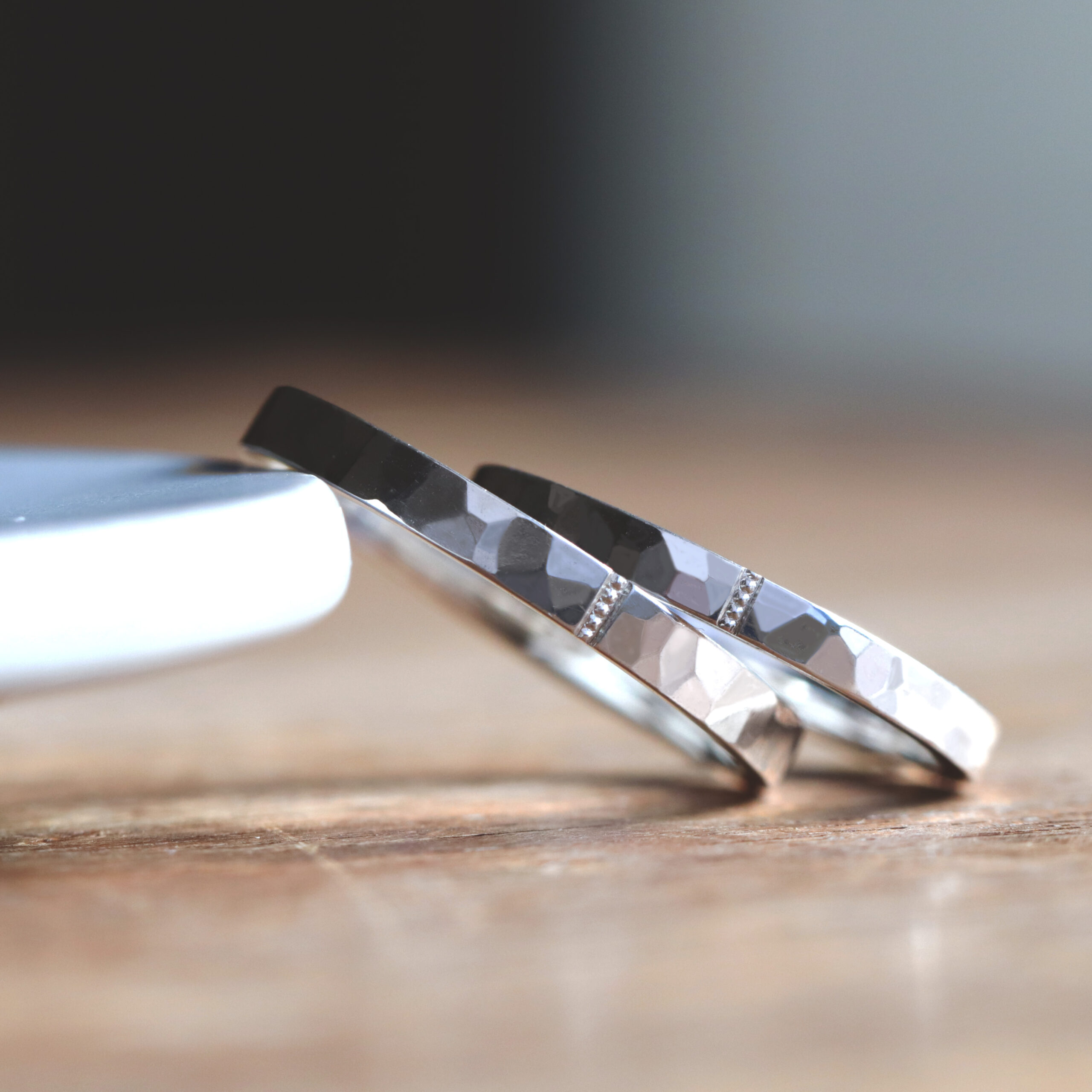 素材違いで同じ石目のテクスチャーを入れたご結婚指輪