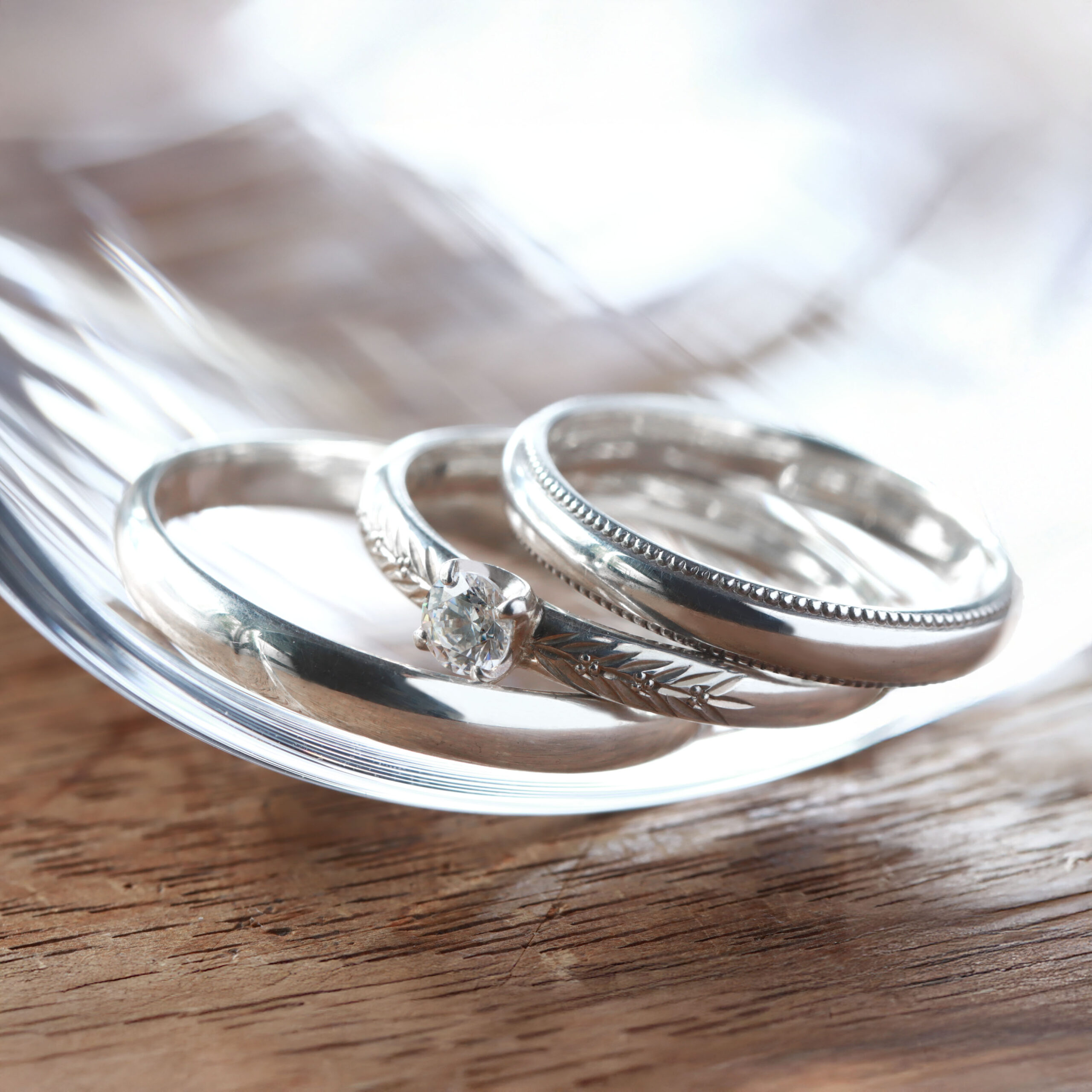 ご結婚指輪とご婚約指輪のデザインを揃えて重ね付けも楽しむ3本セットデザイン