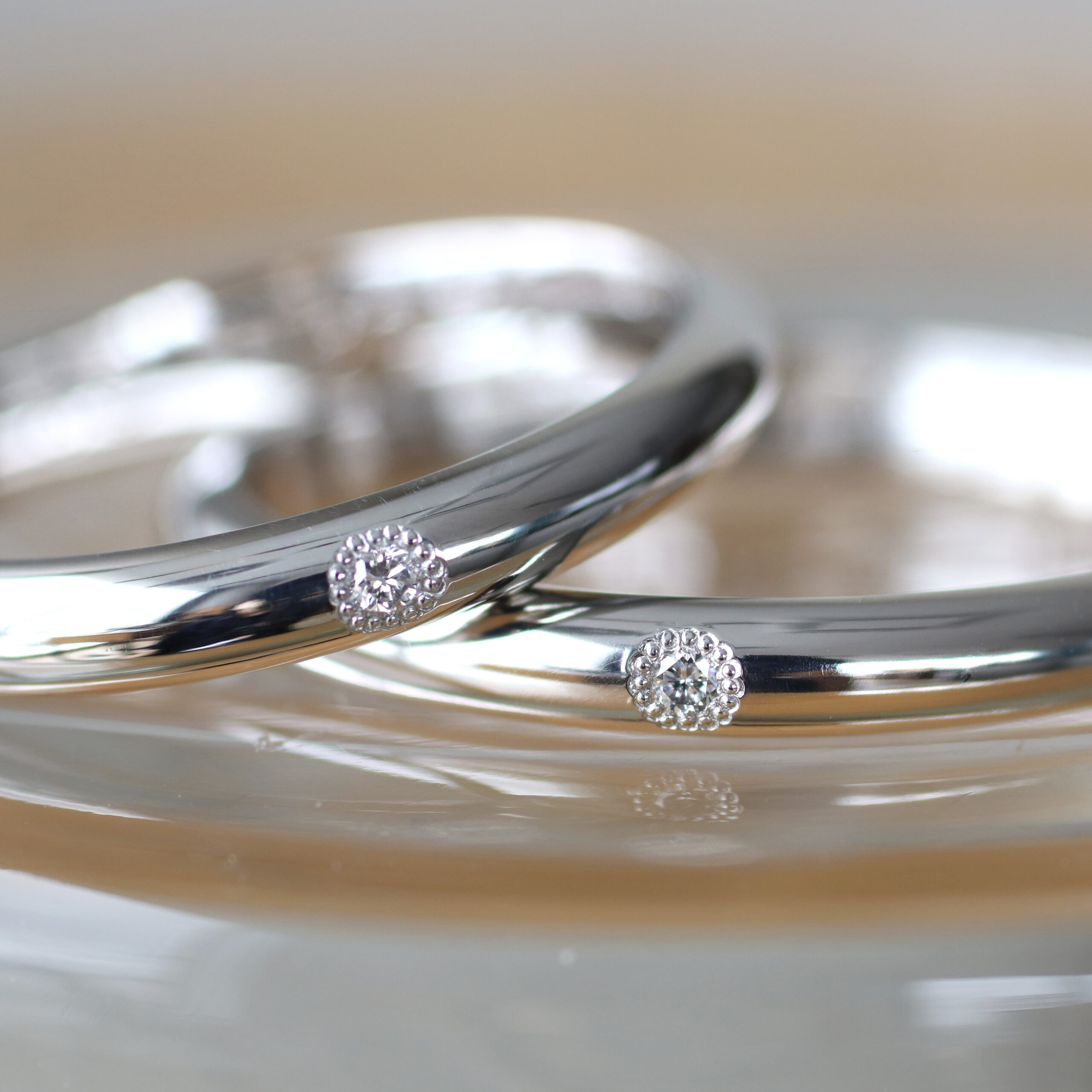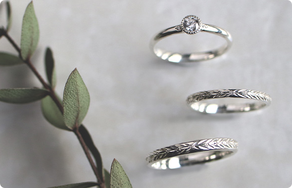 古くからブライダルリングの定番として愛される素材。純白を思わせるシャープな白色の輝きが魅力です。