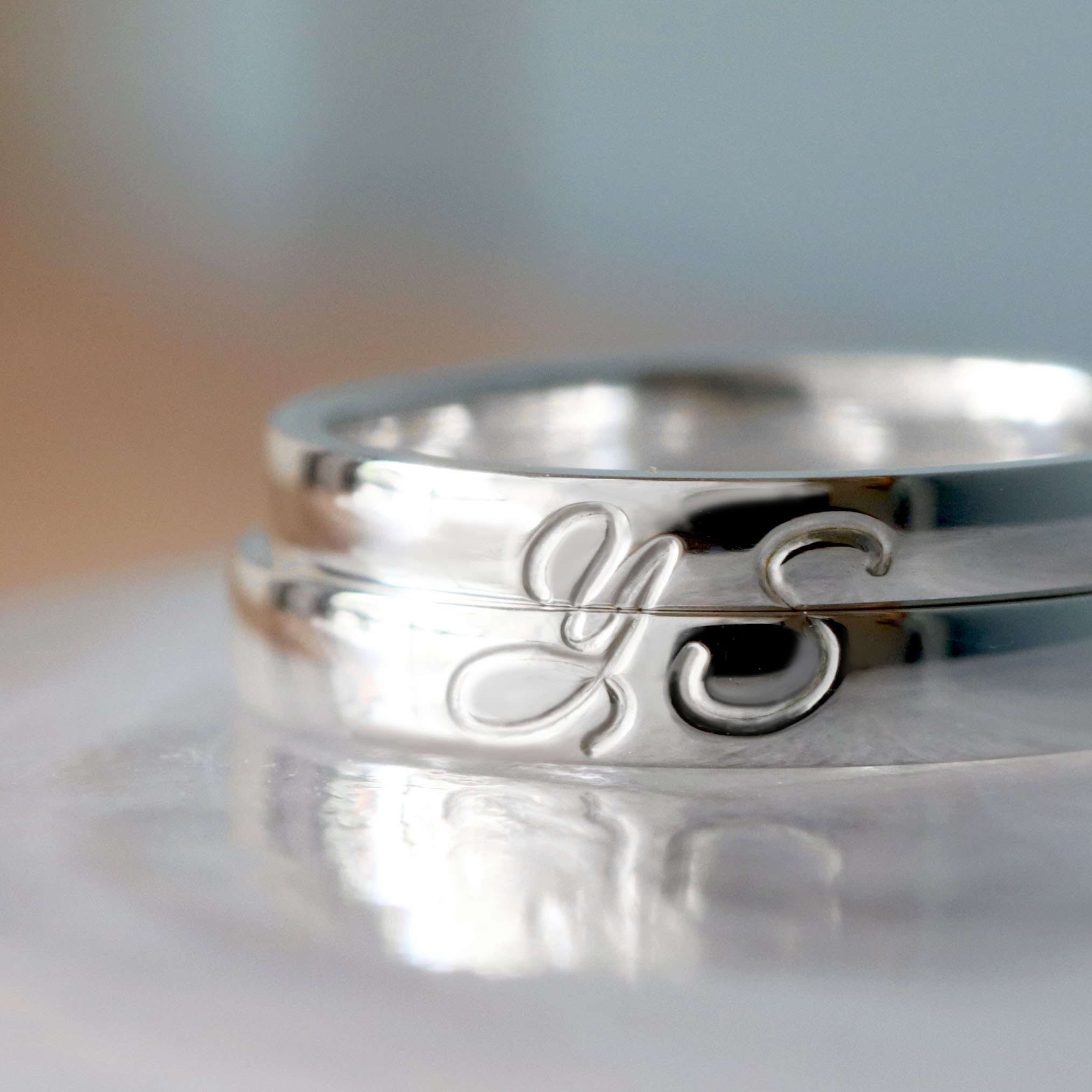 レトロな刻印機を使ってリングの内側にイニシャルや記念日、メッセージなどをお入れします 。