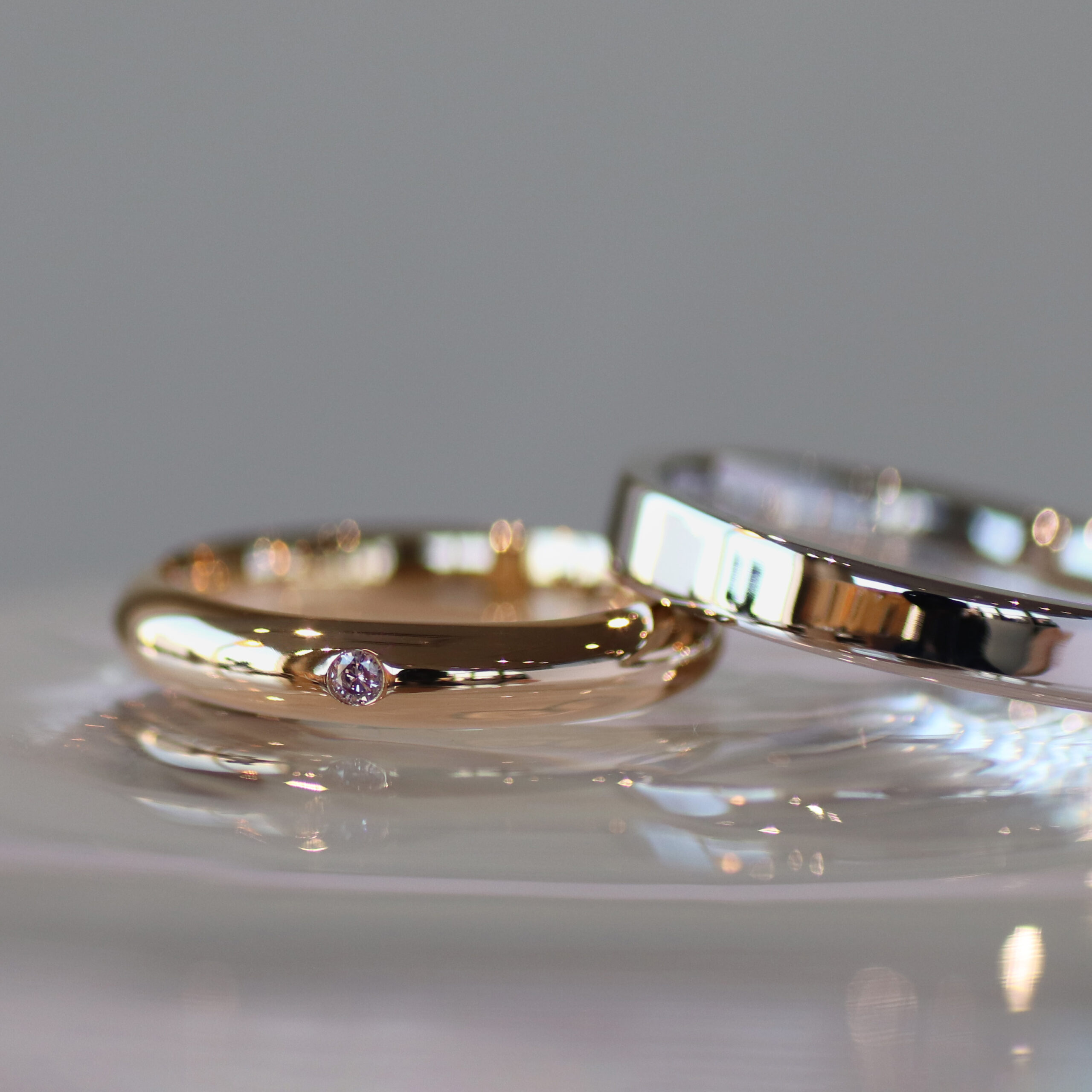 - どちらも「世界にひとつのオリジナル」という点では共通していますが、オーダーメイドでは職人が全ての工程を担当するため、似ている指輪が他にも存在することがあります。一方、手作り指輪の場合は、ご結婚されるお二人が自ら制作することで、一緒に作った思い出が加わり、唯一無二の指輪が完成します。制作工程はオーダーメイドと変わらず、オリジナルデザインが可能です。お二人の一生の思い出に残る指輪として、手作り指輪がおすすめです。
