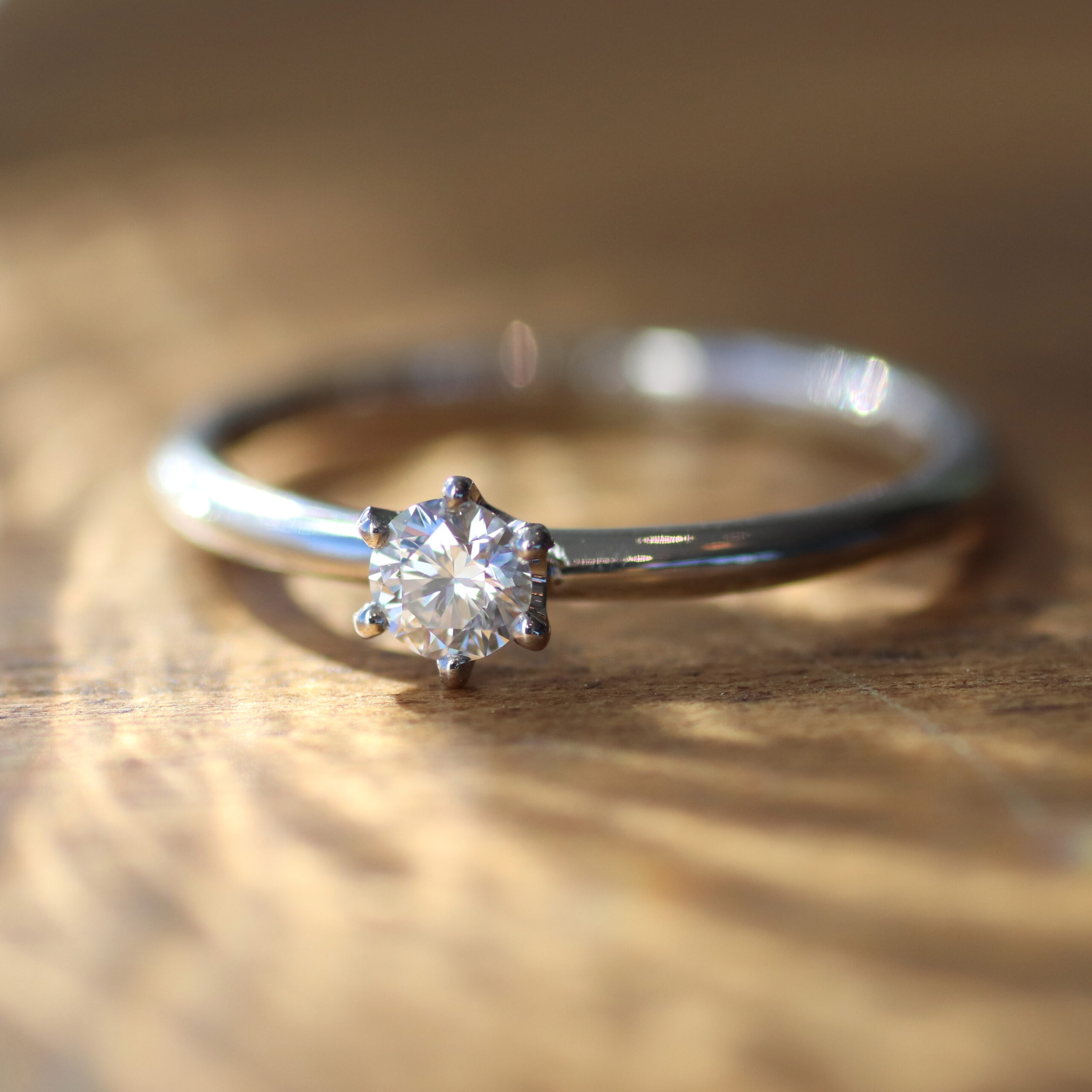 世代やお相手の雰囲気を問わない、シンプルで王道な婚約指輪を手作り。ダイヤモンドの輝きを婚約指輪に込めて、ふたりの未来を明るく照らしてください。