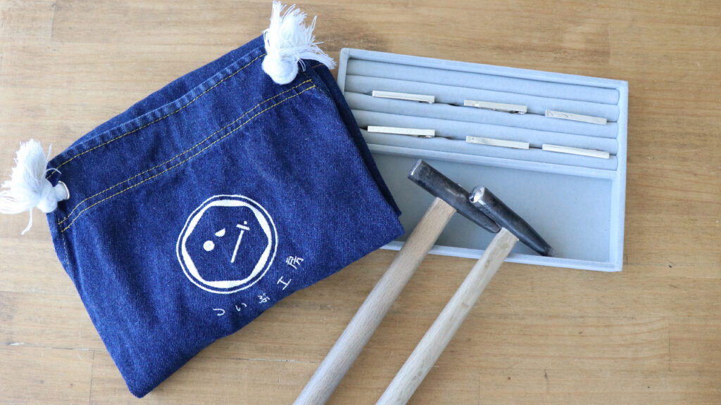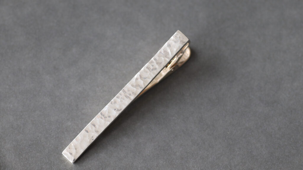 ついぶ柏工房では、「シルバー950」を素材に使用し、表面に槌目模様をつけたり、鏡面仕上げで光沢を出したりと、あなただけのデザインでネクタイピンを制作いただけます。