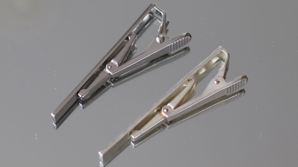 英語の「pin」は本来「針」や「留め具」といった意味がありますが、英語圏では「tie pin」という言い方はあまり一般的ではなく、ネクタイを留めるアクセサリーは