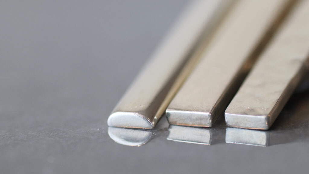 ついぶ柏工房では、ネクタイピン作りに**「シルバー950」**という純度の高い銀素材を使用しています。
