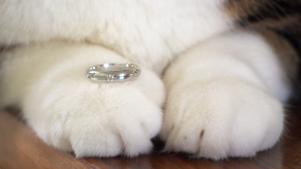 ご制作日当日はもちろん、ねこ留めを施した指輪のお受け取り時の撮影にもご利用いただけます。