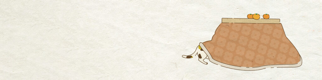 中の台紙デザインは3種類、こたつに入る猫をイメージしてデザインしました。